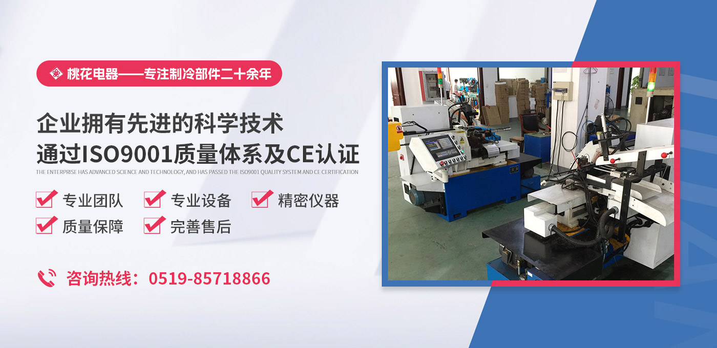 常州桃花電器有限公司地處中國長江“金三角”之稱的上海至南京高速公路、城際高鐵、常州高新經濟技術開發區路段,交通便利、技術力量十分雄厚。它是集研究、開發設計、制造和經營制冷核心部件的企業,主要生產中央空調上使用的制冷部件。產品有膜片式單向閥、鋼球式單向閥、四氟式單向閥、過濾器、消音器等系列。年生產制冷核心部件200萬只,其性能達到國際同類產品水平。  企業擁有先進的科學技術、國際先進的生產加工設備和精密的檢測儀器,并已通過ISO9001質量體系及CE認證,公司歷史悠久,2000年起,經過長期積累、沉淀,經驗豐富,從而保證了產品的高質量、高性能、高耐用性。企業產品在國內外市場具有較高的知名度,深受眾多中外品牌制冷客商的好評。主要客戶有約克、麥克維爾、美的、開利、特靈、頓漢布什、清華同方、天加等.并出口北美、歐洲、東南亞等地區。  高品質產品是企業的保證,周到服務是合作友誼的承諾,企業本著“求